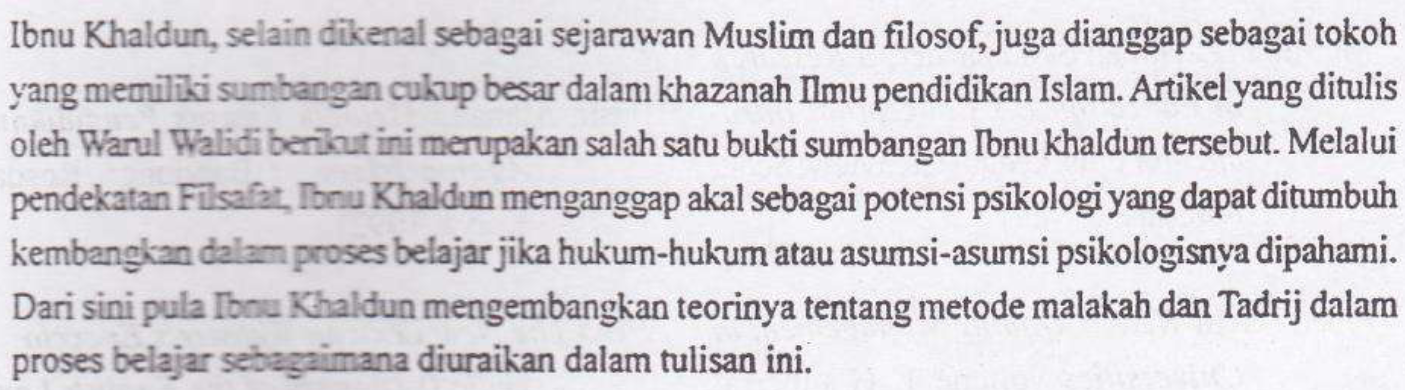 Teori Belajar Malakah Dan Tadrij Ibnu Khaldun (Suatu Tinjauan Filosofis Metologis)